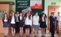 30.04.2015 r.Dzisiaj odbyła się uroczysta akademia z okazji Rocznicy Uchwalenia Konstytucji 3 Maja. Montaż słowno - muzyczny przygotowała klasa VI.