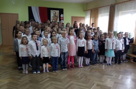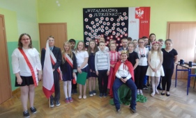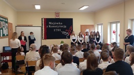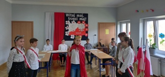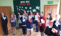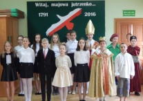 29.04.2016 r.Uczniowie z klas V i VI przygotowali uroczystą akademię z okazji Rocznicy Uchwalenia Konstytucji 3 Maja.