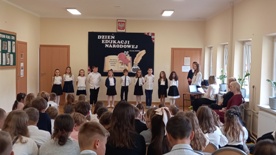 13.10.2015 r.Samorząd Uczniowski przygotował krótki montaż słowno-muzyczny z okazji przypadającego 14 października Dnia Edukacji Narodowej. Uczniowie wcielili się w role nauczycieli i zagrali scenki z życia szkoły. Na koniec były ogromne brawa dla aktorów oraz życzenia dla nauczycieli