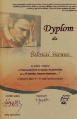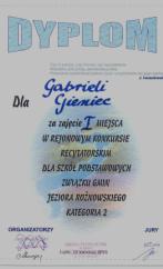 4 marca 2014 r.W Zespole Szkół w Jelnej odbył się Międzyszkolny Konkurs Recytatorski „O księdzu Jerzym wierszem…”. W konkursie wzięli udział uczniowie szkół podstawowych z terenu gminy Gródek n/ Dunajcem, którzy recytowali poezję poświęconą życiu, działalności i męczeńskiej śmierci ks. Jerzego Popiełuszki. Gabrysia wzruszająco wyrecytowała wiersz Anny Kamieńskiej pt. „Przy grobie księdza Jerzego Popiełuszki” i zdobyła I miejsce.