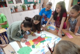 Dzieci uczestniczyły w warsztatach literackich pt. „Czy znasz Pippi Pończoszankę?” organizowanych z okazji 70. rocznicy pierwszego szwedzkiego wydania książkowej historii o wesołej dziewczynce Pippi, autorstwa Astrid Lindgren.