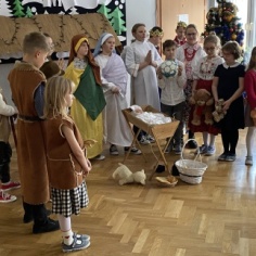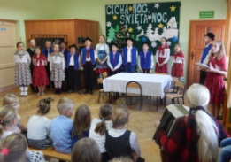 22.12.2015 r.Dzisiaj w Szkole odbyła się uroczysta Wigilia. Uczniowie przygotowali jasełka bożonarodzeniowe, wszyscy składali sobie życzenia radosnych świąt. Wspaniały koncert kolęd wykonał na skrzypcach uczeń klasy I