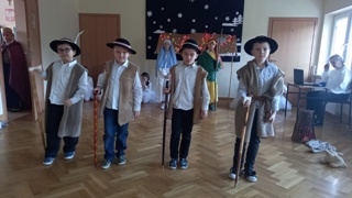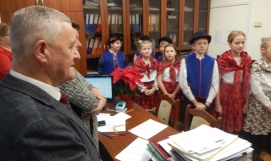 23.12.2014 r.Uczniowie naszej szkoły udali się z gwiazdą i turoniem do Urzędu Gminy w Gródku nad Dunajcem, gdzie zaprezentowali program grupy kolędniczej oraz tradycyjne góralskie i lachowskie kolędy. Dzieci złożyły życzenia Panu Wójtowi i pracownikom Urzędu Gminy. Jak to kolędnicy mają w zwyczaju uczniowie wstąpili jeszcze do banku, na pocztę, ośrodka zdrowia i ośrodka pomocy społecznej robiąc przy tym dużo hałasu i składając życzenia świąteczno-noworoczne.