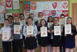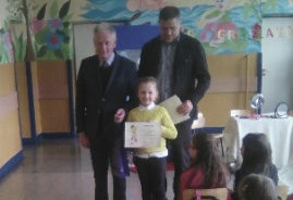 30.12.2015 r.Weronika Prusak z klasy VI bierze udział w konkursie historycznym „Losy żołnierza i dzieje oręża polskiego w latach 1531-1683. Od Obertyna do Wiednia. Rzeczpospolita Obojga Narodów”. Uczennica osiągnęła bardzo wysoki wynik w eliminacjach rejonowych (93%) i zakwalifikowała się do etapu wojewódzkiego. Gratulujemy i życzymy dalszych sukcesów.