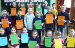 15.05.2016 r.10 maja 2016 r. w Zespole Szkół w Przydonicy odbył się I Gminny Konkurs Ortograficzny "Mały Mistrz Ortografii", adresowany do uczniów klas I - III. Uczniowie szkół z naszej Gminy zmierzyli się z dyktandami, testami, krzyżówkami i łamigłówkami, wymagającymi znajomości zasad pisowni i ortografii. Z dumą informujemy, że zdobyliśmy dwa złote medale, pierwszy złoty medal w kategorii klas I zdobył Antoni Tobiasz a w kategorii klas II złoty medal zdobył Filip Burek.
