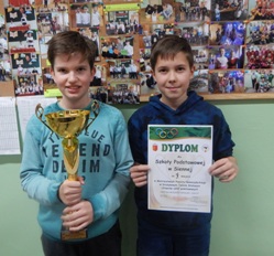 25.11.2015 r.24 listopada 2015 roku uczniowie klasy V Michał Tokarczyk i Dawid Trojanowski zdobyli I miejsce drużynowo w Turnieju Międzygminnym