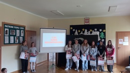 o Henryku Sienkiewiczu. Wzięli w nim udział uczniowie z klas III-VI. Uczestnicy konkursu musieli się wykazać znajomością życia i twórczości pisarza. Zwycięzcami zostali: Radosław Rajski z kl. VI - 1 miejsce, Kamil Płachta z klasy III - 2 miejsce, Monika Kuźma z klasy III - 3 miejsce. Wszystkim uczestnikom gratulujemy wysokich wyników i zdobytej wiedzy!