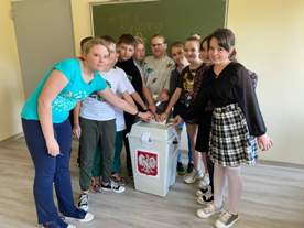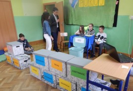 22.09.2015 r.W szkole przeprowadzono wybory do samorządu uczniowskiego. Przewodniczącą szkoły została uczennica klasy VI Weronika Prusak.,