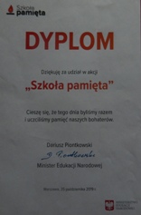 04.06.2016 r.Weronika Prusak została finalistą etapu wojewódzkiego XXI Ogólnopolskiego Konkursu Historycznego im majora Marka Gajewskiego "Losy żołnierza i dzieje oręża polskiego w latach 1531-1683. Od Obertyna do Wiednia. Rzeczpospolita Obojga Narodów".