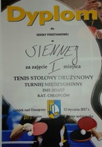 2.02.2015 r.W Zespole Szkół w Gródku nad Dunajcem odbyły się międzypowiatowe zawody w indywidualnym tenisie stołowym. Naszą szkołę reprezentował Dawid Trojanowski, uczeń klasy IV Mistrz Powiatu Nowosądeckiego. W zawodach wzięło udział 20 zawodników z powiatów: gorlickiego, limanowskiego, nowosądeckiego i miasta Nowy Sącz. Dawid po bardzo zaciętej walce zajął IV miejsce i będzie reprezentował naszą szkołę na zawodach wojewódzkich w Zakliczynie.