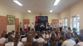 17.06.2016 r.Dzisiaj odwiedzili nas panowie policjanci, którzy omówili zasady bezpiecznego spędzania przez uczniów wakacji, zarówno w domu, nad wodą i na wyjazdach.